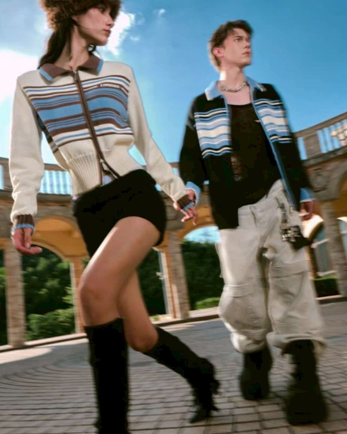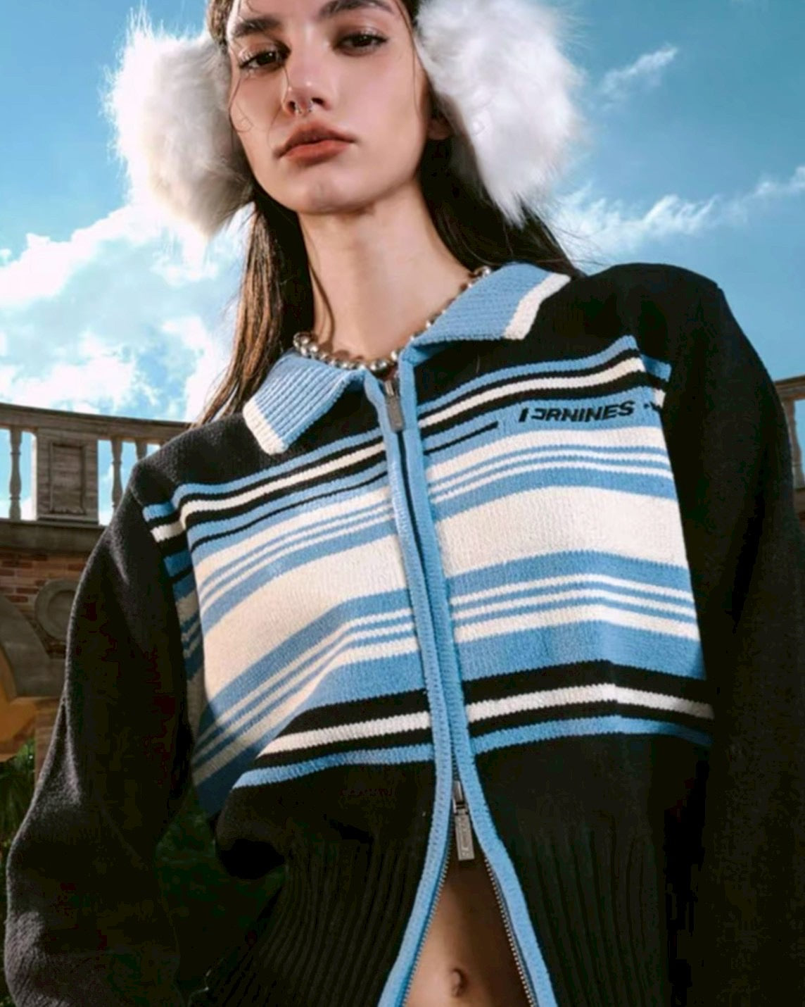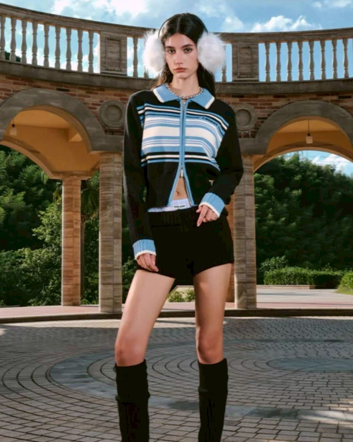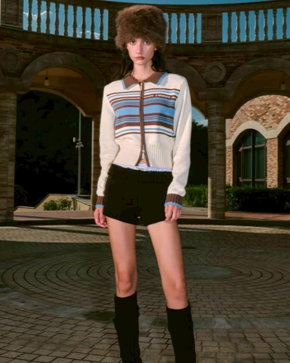line zip short knit